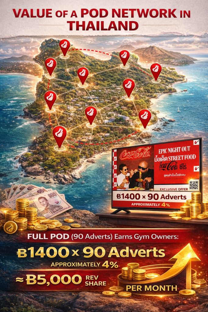 This POD structure gives advertisers the ability to expand their reach across multiple gym locations at the same time, rather than advertising in just one venue. For gym owners, it means being part of a wider, more valuable network that gives local businesses stronger visibility and repeated exposure to the right audience.
